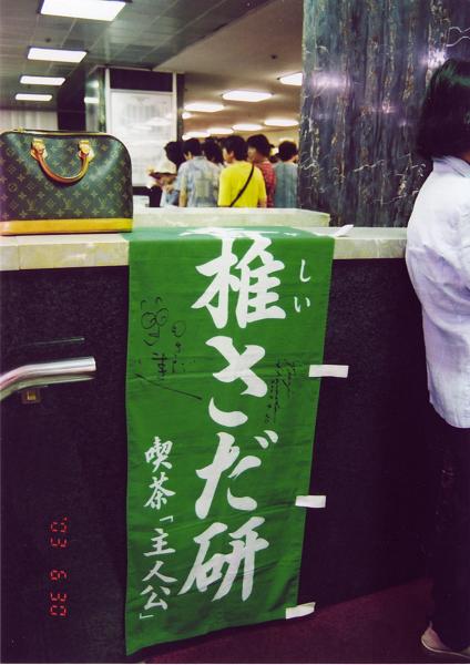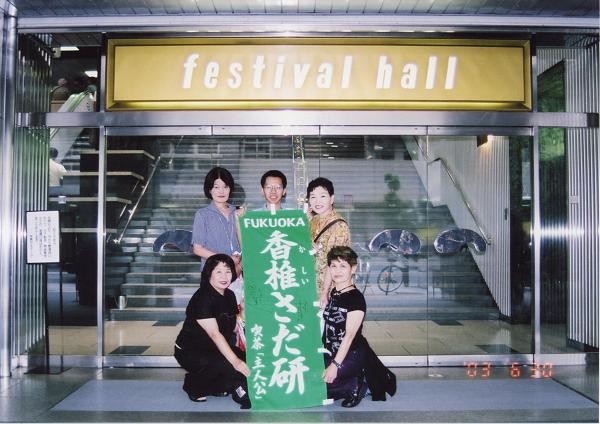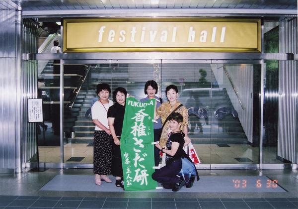 大阪フェスティバルホール前にて(2003/6/30) 福岡香椎さだ研メンバーが大阪フェスティバルホールに進出! いよいよさだ研幟も九州を飛び出し、記念すべきフェスデビューとなりました。\( ^o^ )/