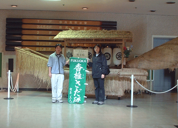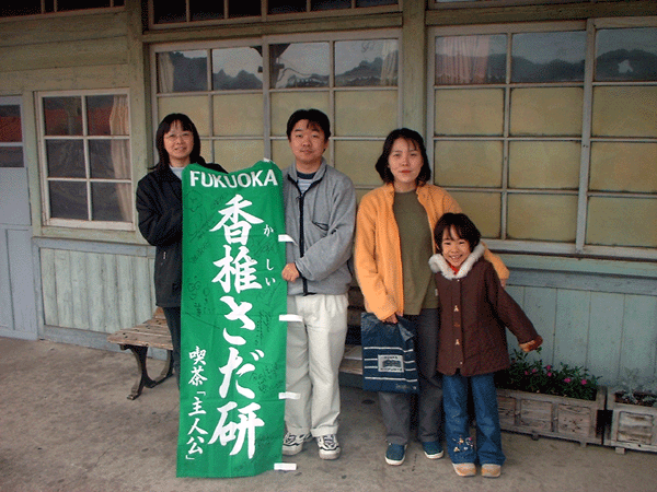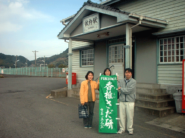 | (レポート執筆:いでぐち) 2月27日夜、川添さんと明日の解夏ツアーについて、少々打ち合わせを行う。今回は行ったことが無い四海楼で昼食を食べることに決定。また大浦天主堂近くでザボンジュースを飲むことも決定。 2月28日、ツアー当日。8:00出発予定だったが実際は8:15ごろになった。川添さん、youさんを乗せ呼子を出たのは8:30ごろ。 最初の目的地東彼杵(ひがしそのぎ)町を目指す。映画「精霊流し」の中に出てくる北鎌倉駅の撮影が行われた彼杵駅を探す。長崎自動車道の東彼杵ICで降りて一般道を少し走るとすぐに見つけることができた。Makiさんと約束していた10:00を2,3分過ぎて到着。その古い趣のある駅舎はまさしく映画の中の北鎌倉駅。川添さんの「やっぱり写真は映画の中のように傘をさして・・・」という言葉で傘を使うことに。ちょうど駅の正面に停まっているタクシーがなかなか動かない。タクシーの斜め前でのぼりを出しながら時間を過ごす。Makiさんは東彼杵町在住。撮影のことは町内のオフトークで紹介されていたということだった。また、ここでロケが行われたとき現場に来たそうで、その様子を撮影した写真や撮影が行われたことを伝える町の広報誌を見せていただいた。その写真で駅の入り口横にある自動販売機は映画では木で隠されていたことを検証。またポストも現在は四角だが映画では時代を考え丸いポストに変わっていたことも驚いた。しばらくすると青い電車がホームに滑り込んで来た。お客さんが2,3人出てきた。タクシーを利用する人はいない。タクシーが動いた。さっそく、記念撮影。その後、駅の中に入り、「映画『解夏』を見て来てくれた方なんです。ホームに入っていいですか?」とMakiさんが駅員さんにお願いしてくれて、ホームに入ることができた。ベンチのところで記念撮影。駅員さんにお礼をいい、駅を出た。Makiさんと別れていよいよ長崎市内へ向かう。 |