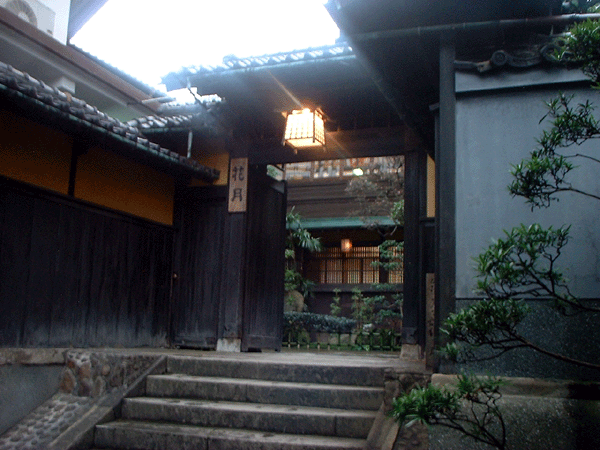 | 映画の中で隆之がハタ上げをする場所、風頭公園。直接車で上る道路がわからなかったので、ぐるっと回ることにする。いつの間にか長崎大学経済学部のキャンパス横の道路に出た。キャンパスをぐるりとまわる道らしい。途中、映画「精霊流し」に出てきた病院の敷地の設定だったベンチや木を探すが似たような雰囲気だったが、よくわからなかった。改めて風頭公園に向かおうとするが、方向がよくわからなかった。とりあえず、思案橋のところで右に曲がってみるとそこに福砂屋本店を発見!少し先に進んだところに車を停め、youさんがカステラを買いに向かった。現在地を地図で確認すると、すぐ近くに映画「精霊流し」に出てきた史跡料亭花月があるらしい。車から降りてあたりを見回す。あった。なんと正面に史跡料亭花月と書かれた碑を発見その奥にいかにも料亭らしい建物が見えた。youさんが車に戻ってきたあと、花月前まで小走りに近づき玄関だけ撮影。 なんという偶然。。。。 |