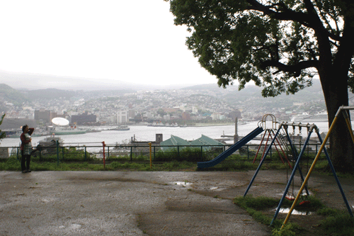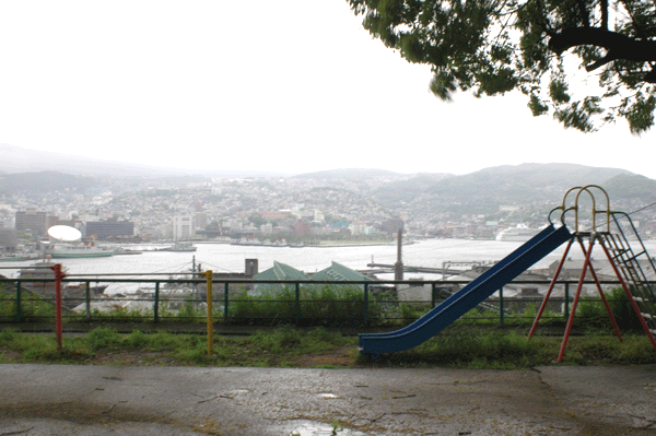 | 3人が訪れた長崎の港を見下ろす公園(鳥岩神社境内) |