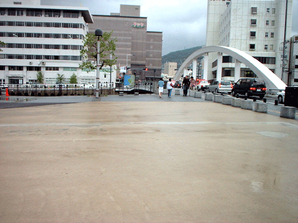 | 3人がバスケットをしていた場所(長崎駅裏の夢彩都近くの出島ワーフ) |