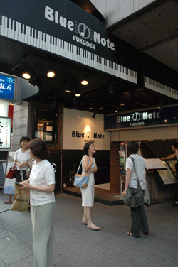 ブルーノート入口。ピアノをデザインした看板。ここから階段を下りたところ(地下)に会場の入口がある。
