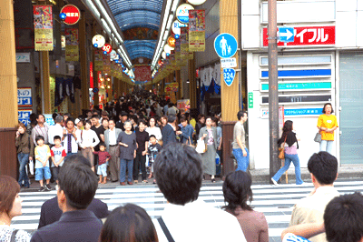 築町アーケード付近。長崎くんちで街は賑わっていました。 |