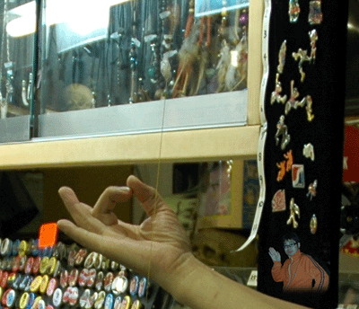 そこで買い物をするとお店のひとがイリュージョンを見せてくれるんです!記念撮影をお願いしたら「何か写ってしまうかもしれません」とのこと・・・・拡大してみると・・・・(ノ゜ο゜)ノオオオオォォォォォォ-、怪しい人影がぁ!→拡大 | |