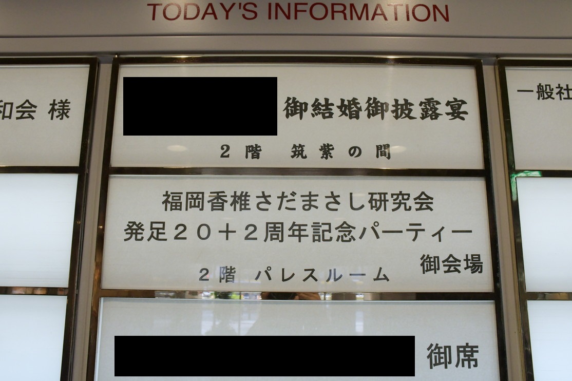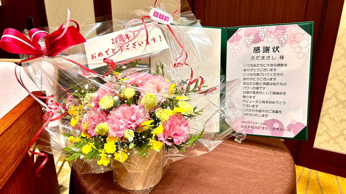| 福岡香椎さだまさし研究会 発足20+2年周年記念パーティー& さだまさし様デビュー50周年勝手に祝賀会 参加いただいた皆さまありがとうございました。 2023.10.14 福岡サンパレスホテル |